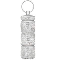 - Add sparkle to your everyday essentials with this dazzling bling storage keychain! Covered in shimmering iridescent rhinestones, this stylish accessory is more than just eye-catching—it's functional too.
